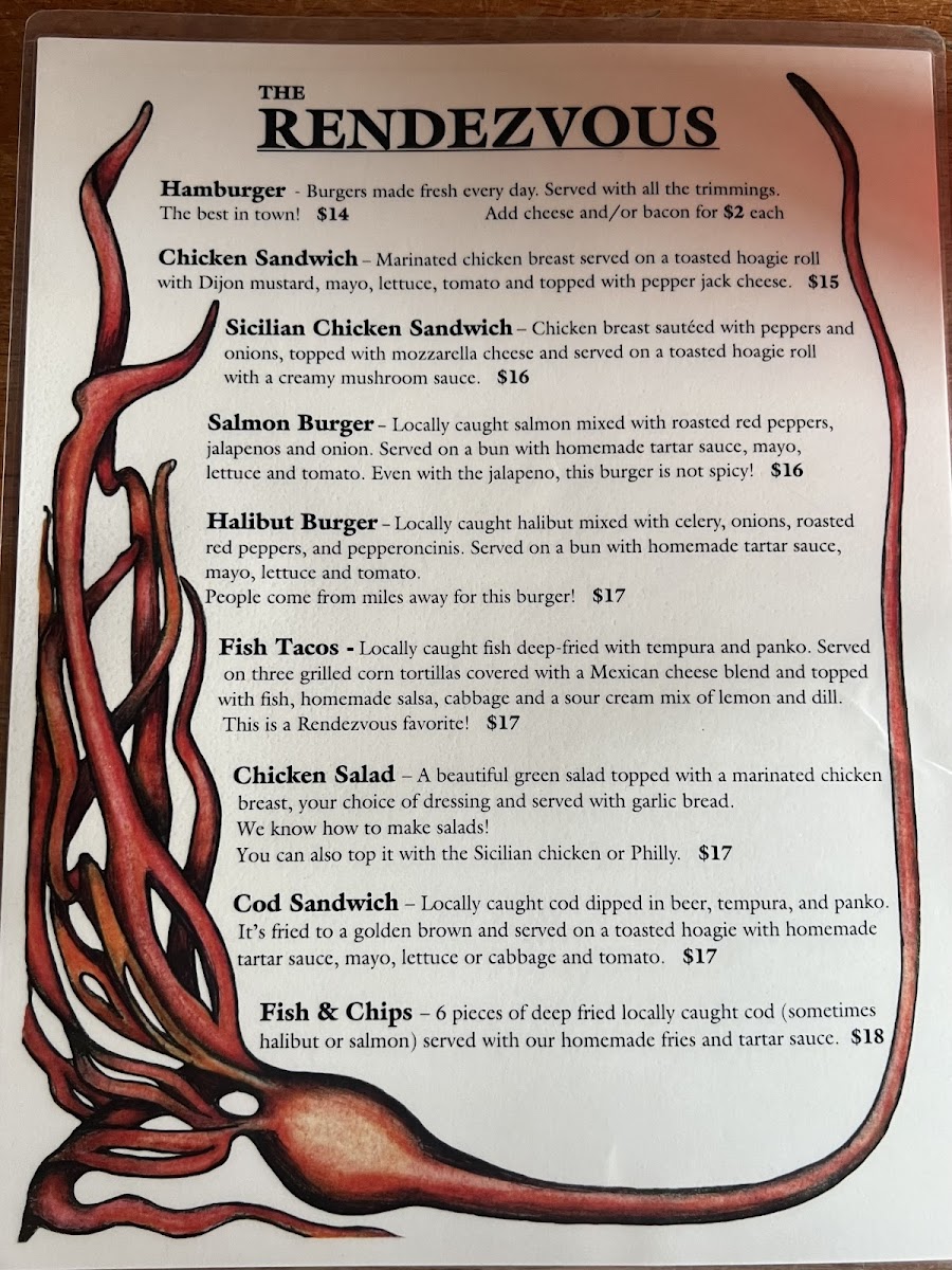 Reviewers rave about the clam chowder, hailed as the best in town, and the warm, friendly atmosphere that invites a gathering of friends. At Rendezvous, you’ll find not just great food, but a welcoming space that embodies the spirit of Kodiak.